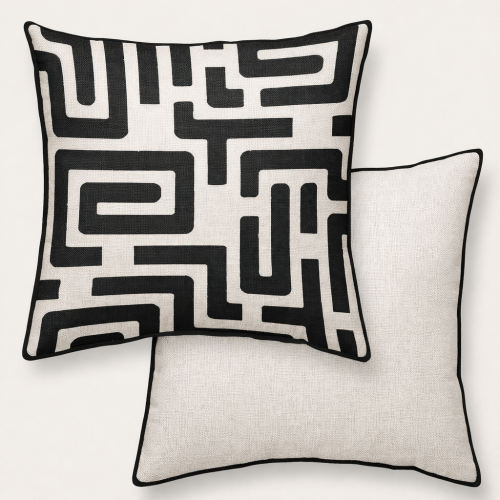 Set de 2 Cojines de líneas abstractas en Blanco y Negro